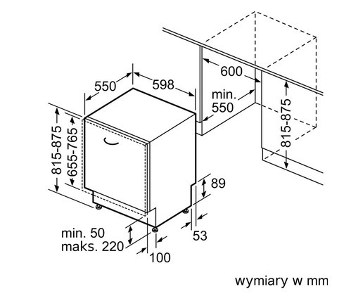 - Wymiary urządzenia (mm): 815 x 598 x 550 mm