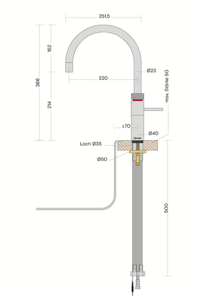 Oprócz wody gorącej, zimnej i wrzącej o temperaturze 100°C, Fusion może również dostarczać wodę schłodzoną i gazowaną w połączeniu z dodatkowym zbiornikiem Quooker CUBE.