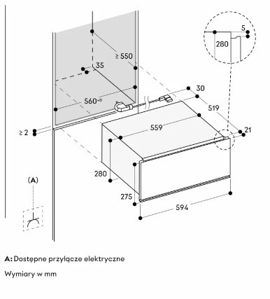 - Wielkość użytkowa wnętrza: W 548 mm x H 232 mm x D 410 mm