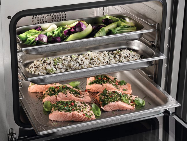 - Indywidualna możliwość ustawień wilgotności w programie Para + pieczenie