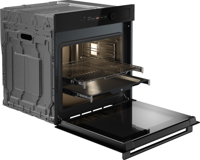 Obsługa dużych i ciężkich, gorących naczyń z piekarnika bywa niewygodna i ryzykowna. Niezależnie od ich wagi i temperatury, nasze lekko przesuwające się, w pełni wysuwane prowadnice teleskopowe ułatwiają bezpieczne wkładanie i wyjmowanie potraw, eliminując konieczność sięgania do rozgrzanego wnętrza piekarnika. Prowadnice teleskopowe w piekarnikach ASKO dodatkowo zmniejszają ryzyko rozlania lub upuszczenia jedzenia.