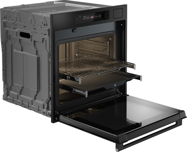 Obsługa dużych i ciężkich, gorących naczyń z piekarnika bywa niewygodna i ryzykowna. Niezależnie od ich wagi i temperatury, nasze lekko przesuwające się, w pełni wysuwane prowadnice teleskopowe ułatwiają bezpieczne wkładanie i wyjmowanie potraw, eliminując konieczność sięgania do rozgrzanego wnętrza piekarnika. Prowadnice teleskopowe w piekarnikach ASKO dodatkowo zmniejszają ryzyko rozlania lub upuszczenia jedzenia.