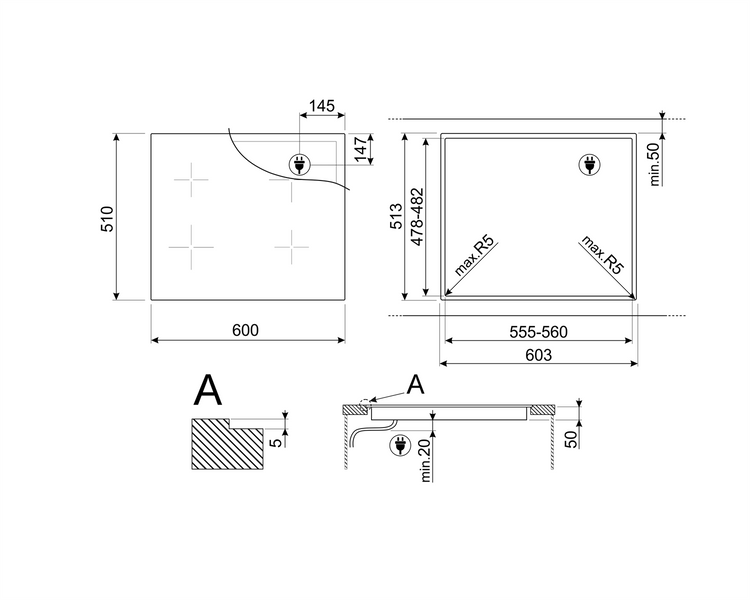 • Standardowe wycięcie: 478-482x555-560 mm