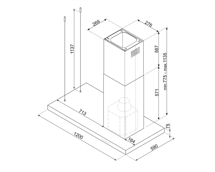 • Minimalna odległość od płyty elektrycznej: 650 mm