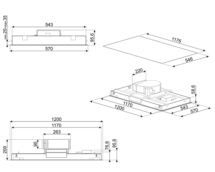 • Minimalna odległość od płyty elektrycznej: 650 mm