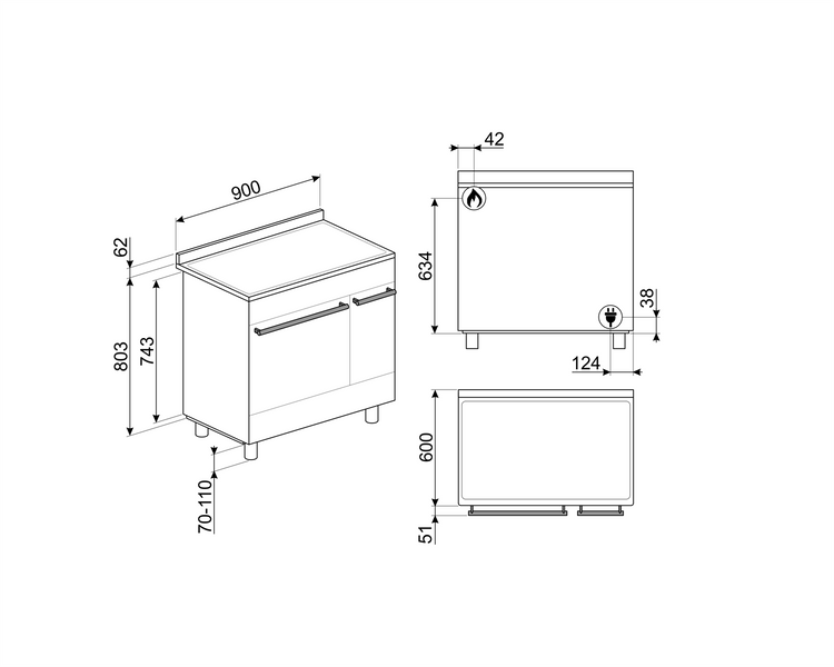 - Installation positioning of the appliance: Free-standing, Class 1, Built-in, Class 2-1 norm UNI EN 30-1-1