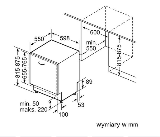 - Maksymalna wysokość niszy: 875 mm