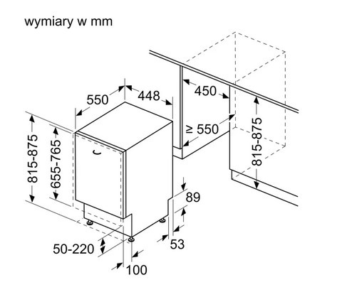 - Wymiary urządzenia: 815 x 448 x 550 mm