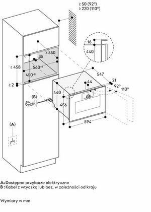 • Gniazdo sieciowe musi być dostępne i znajdować się poza zabudowaną wnęką