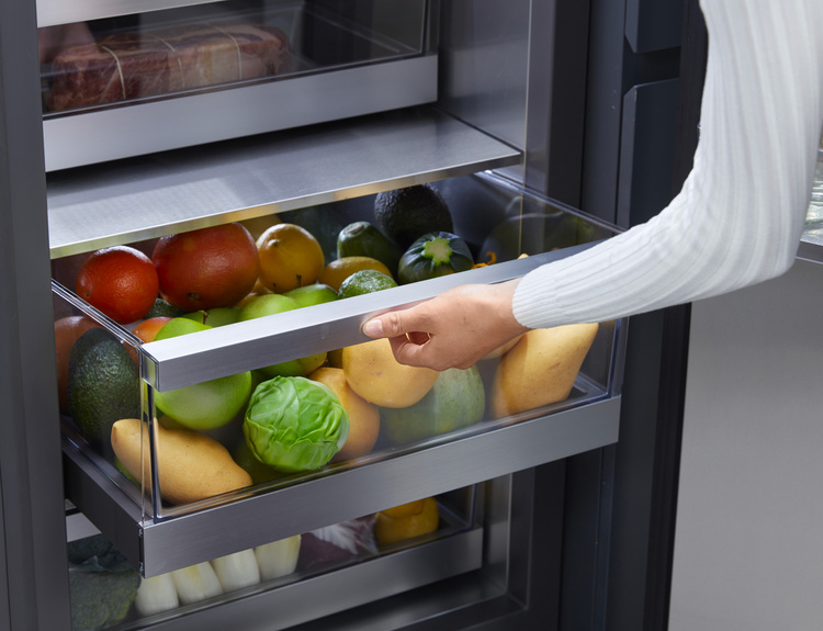 - Wszystkie gumowe uszczelki są w kolorze ciemnoszarym, a wewnętrzne panele, półki, szuflady i detale nie mają białego wykończenia, co zapewnia elegancki i luksusowy wygląd oraz najwyższą jakość urządzenia