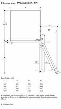 - Kąt otwarcia drzwi 115°, możliwość blokady 90°