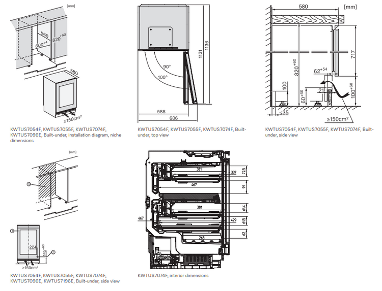 - Chłodziarka do wina do zabudowy pod blatem, wysokość niszy do zabudowy 82-88 cm.