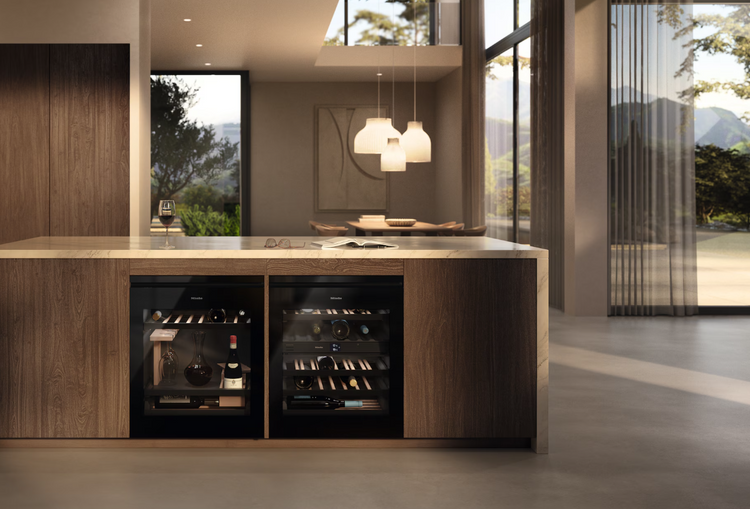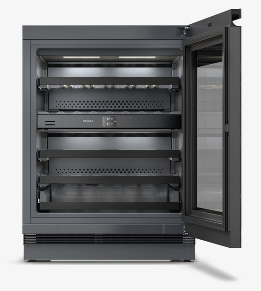 Chłodziarka do wina do zabudowy pod blatem, wysokość niszy do zabudowy 82-88 cm z oddz. strefami temperatury, FlexiFrame i ActiveHumidity w kompaktowej konstrukcji.