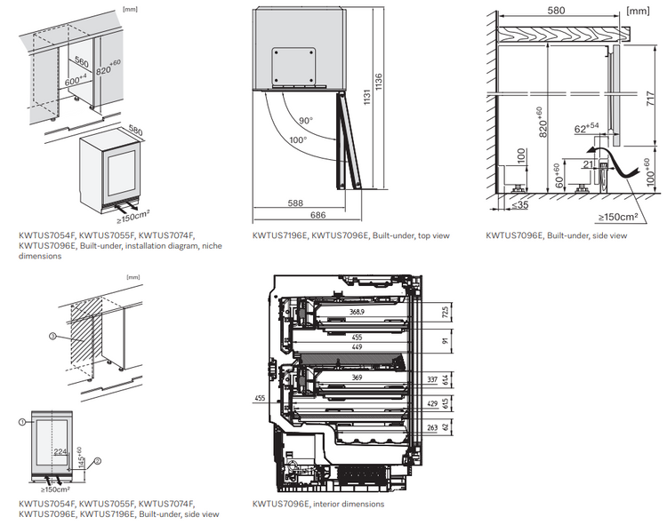 • Chłodziarka do wina do zabudowy pod blatem, wysokość niszy do zabudowy 82-88 cm.