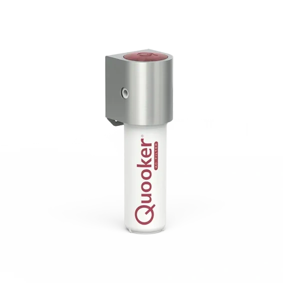 Filtr do zimnej wody został zaprojektowany tak, aby umożliwić szybkie przejście z wody kranowej na zimną wodę filtrowaną. Kran Quooker dostarcza zimną wodę filtrowaną za pomocą jednego naciśnięcia i obrotu, który powoduje podświetlenie pierścienia kranu na niebiesko. Woda przepływa przez filtr z węglem aktywnym, który zapewnia lepszy smak i zapach wody. Filtr jest łatwy w wymianie i należy go wymieniać co 12 miesięcy.