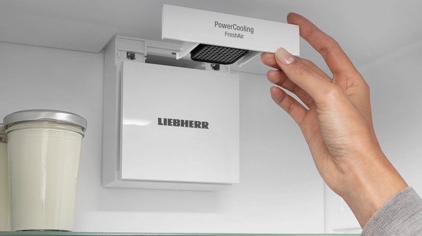 Zapach niektórych produktów spożywczych może być niekiedy odbierany jako niezbyt przyjemny. Dla urządzenia Liebherr to jednak nie problem. Dzięki filtrowi z węglem aktywowanym FreshAir wnętrze urządzenia jest zawsze wypełnione świeżym powietrzem. Filtr znajduje się bezpośrednio na drodze strumienia powietrza w obudowie wentylatora i w ten sposób w znacznym stopniu neutralizuje zapachy. Wskaźnik przypomina o wymianie filtra.