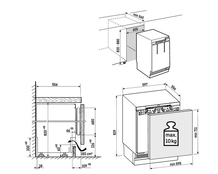 | Wymiary niszy w cm (wys./szer./gł.) | 82 - 88 / 60 / 56,0 cm |