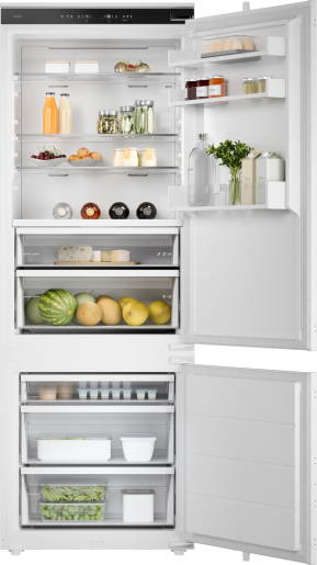 Prawidłowa wilgotność to klucz do świeżości i higieny. Automatyczna kontrola wilgotności zapewnia optymalną wilgotność w szufladzie na owoce i warzywa. Łatwa do czyszczenia membrana wilgoci reguluje wilgotność, membrana automatycznie otwiera się, aby zmniejszyć nadmiar wilgoci lub podnosi ją, gdy jest zbyt niska — dzięki temu produkty nie wysychają ani nie gniją, pozostając świeże i smaczne.
